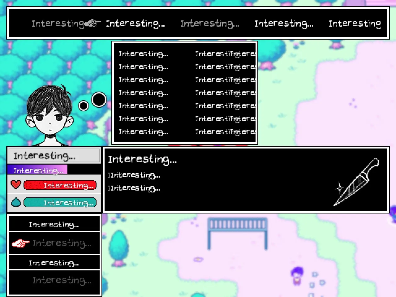 Replaces all the text in game with the word, "Interesting", This is a gift for kenway... if you know, then you know. :)